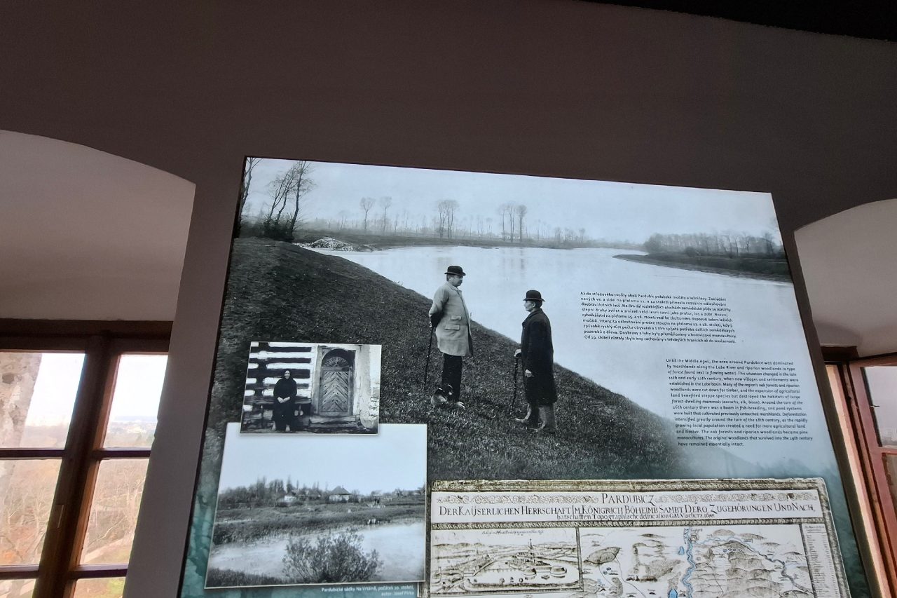 Zajímavý je samozřejmě pohled na vlastní historické jádro Pardubic se Zelenou bránou, Pernštýnským náměstím nebo kostelem sv. Bartoloměje. Také tuto část expozice doplňují historické snímky Pardubic. Z ptačí perspektivy přes střechy zámku uvidíte také zámecké valy, unikátního opevnění pardubického zámku.