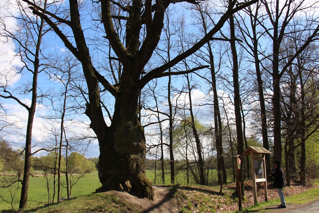 Krčínův dub u Třeboně měří 20 metrů. Připomíná, že i čerti dělají chyby