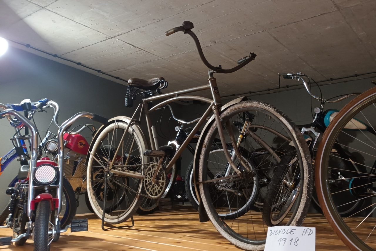 V muzeu ale překvapivě nejsou k vidění pouze motorky. Harley Davidson vyráběl také kola, lodě, skútry, auta, golfové vozíky nebo zmenšeniny pro děti. „Mezi koly tady máme jeden skutečný unikát. Vyrobený byl v roce 1918 a ve světě existují už jen dva další kousky,“ pochvaluje si majitel.