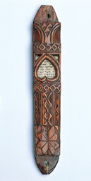 Zatímco rulička pergamenu je ukryta v pouzdru, takže text nemůžeme číst, tři hebrejská písmena zapsaná na rubu svitku musí být patrná. Výřezem v pouzdru tak můžeme spatřit hebrejské znaky Š, D, J, skládající slovo Šadaj, jedno z hebrejských označení Božích jmen. Do češtiny se překládá jako Bůh Všemocný, ale tradiční výklad přisuzuje třem písmenům i jiný význam. Podle něho jde o označení počátku slov ve větě "šomer delatot Jisrael" - neboli "střeží dveře Izraele".¨