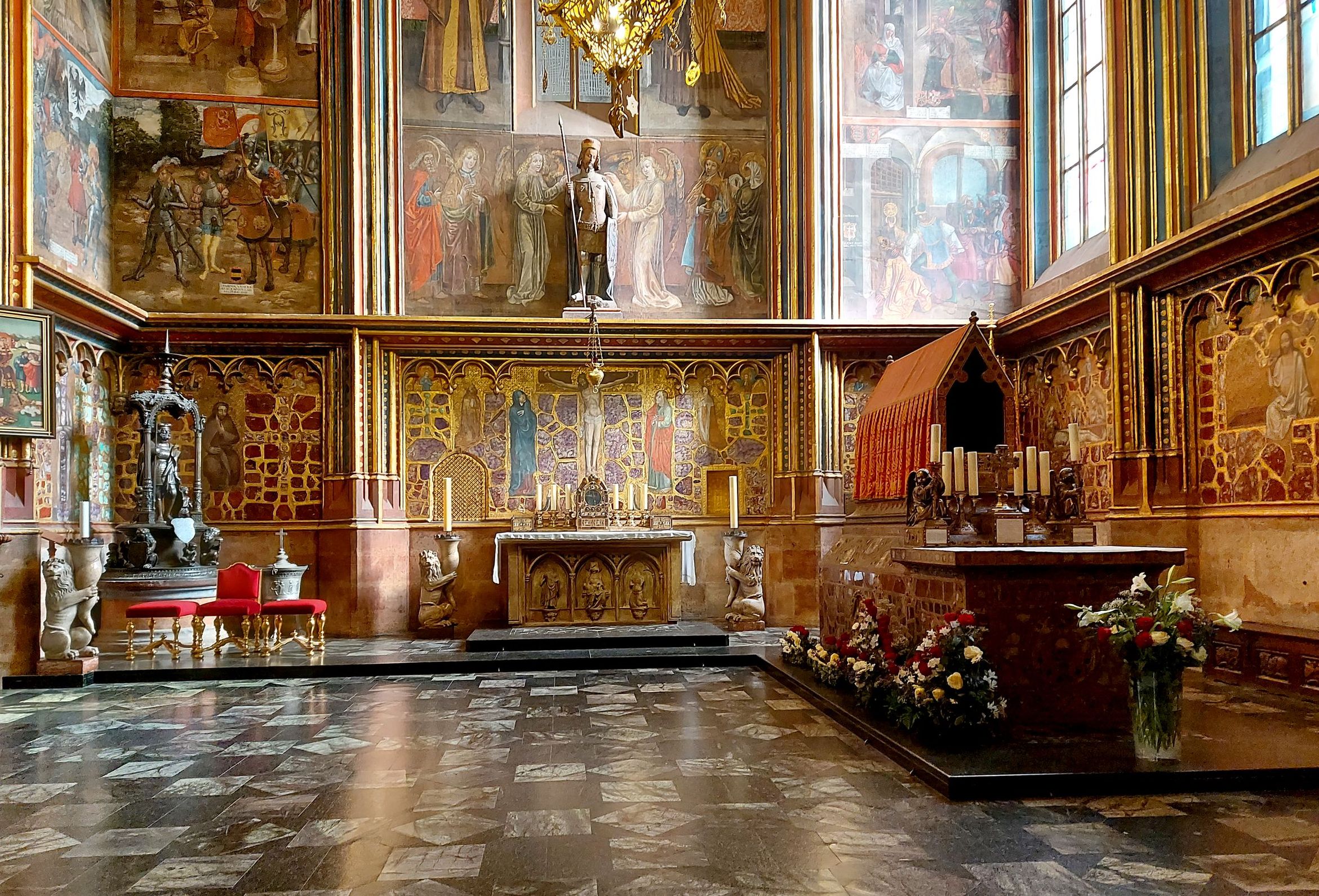 V katedrále sv. Víta na Pražském hradě je možné nahlédnout do Svatováclavské kaple, kde se nachází hrob nejvýznamnějšího zemského patrona. Nádherná výzdoba a také odlišné pojetí architektury zdůrazňují výjimečnost tohoto ústředního místa chrámu. Obklad stěn z drahých kamenů a nástěnné malby pašijového cyklu pocházejí z původní výzdoby kaple ze 14. století.