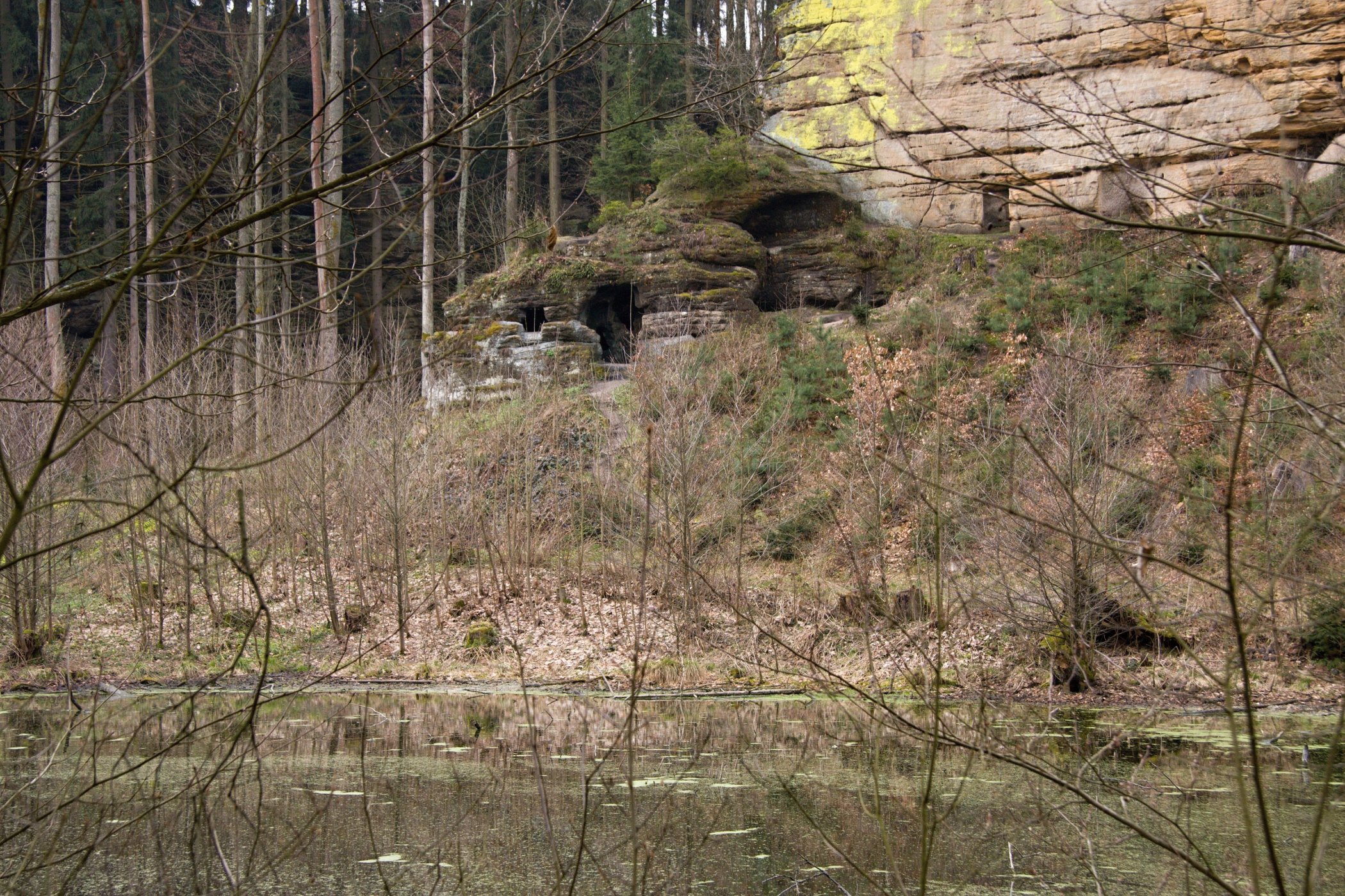 Kdysi prý měl v podhradí domek panský pastýř. Žena mu umřela, a tak zůstal sám s dospívajícím synem. Netrvalo dlouho a mladík si domů přivedl vnadnou krasavici. Holka byla krev a mlíko, za práci uměla vzít, ale stařík jí brzy začal překážet. Den co den na něj nadávala a stěžovala si manželovi, až starému pastýři nezbylo, než si najít jiný příbytek. A protože domek stál hned u skály, sebral nějaké to nářadí a jal se vrtat do pískovce.